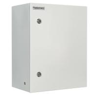 Шкаф монтажный универсальный с монтажной платой и двумя замками; два гермоввода (MG-25); IP66, 400×500×250 мм (Ш×В×Г), полезная глубина 195 мм, 10.0 кг. Цвет серый.